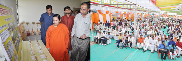She inaugurated the administrative building of Krishi Vigyan Kendra, Lalitpur on this occasion and appreciated the efforts of KVKs for the benefit of farmers of Lalitpur district. Before addressing the gathering of farmers, Hon’ble Ms. Uma Bharati Ji launched Pradhan Mantri Fasal Beema Yojana for the farmers of Bundelkhand districts. In her address, Hon’ble Minister made following points for information to the participating farmers :