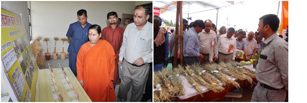 ICAR Institutes, KVKs, agribusiness houses, NABARD, State Department of Agriculture from the 15 districts of Uttar Pradesh and Madhya Pradesh participated in the event and displayed their technologies, information, products, schemes, etc for the benefit of large number of farmers (approx. 2200) from Lalitpur, Jhansi, Banda, Mahoba, Hamirpur, Chitrakoot and Jalon districts of Bundelkhand region of Uttar Pradesh. Scientist-Farmer interactions were also organized on the themes relevant to Bundelkhand including recent schemes launched for welfare of farmers.