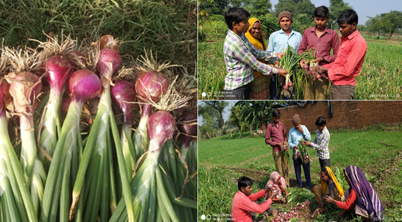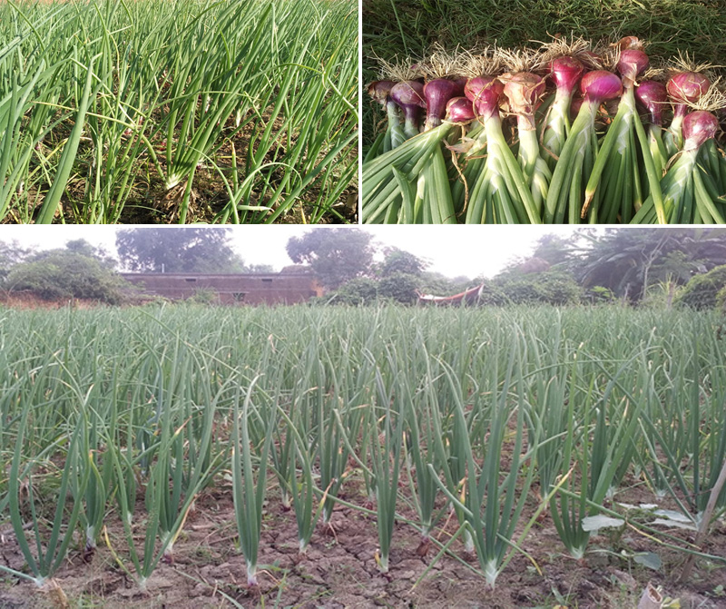 Shri Halku Ram Kushwaha, S/o Shri Suke Kushwaha, 46 years old, is a resident of village Radhapur, Block- Bar is one of the successful farmer who grew Kharif Onion variety Line-883 under Front Line Demonstration. Earlier, in Kharif season he solely cultivate and depend on Blackgram for his livelihood. From last two years, due to adverse climatic conditions, he faced a great loss in Kharif. This year, when he came in contact with KVK and attend the training programme of Scientific cultivation of Kharif onion. He decided to replace the crop of Blackgram with Kharif Onion in some area. KVK provide him high yielding variety (Line-883) of Kharif onion under Front Line Demonstration for one hectare.